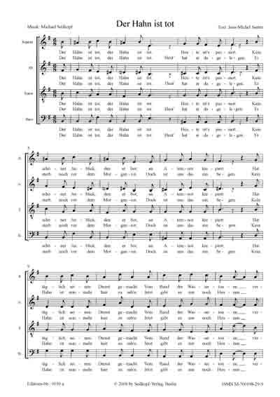 Hahn ist tot (SATB) [für leicht Fortgeschrittene; 2 Seiten; Text: J.-M. Santer, Musik: M.Seilkopf] |