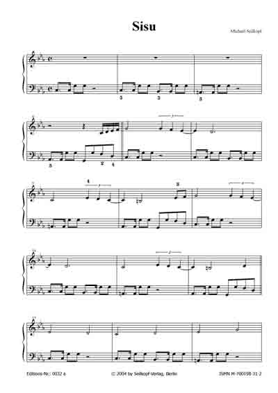 | Sisu (aus: "15 kleine Klavierereien") Während die linke Hand sich an einem Thema scheinbar festgebissen hat, versucht die rechte Hand ein wenig Ruhe in das Spiel zu bekommen. [für Anfänger; 2 Seiten; von Michael Seilkopf] |